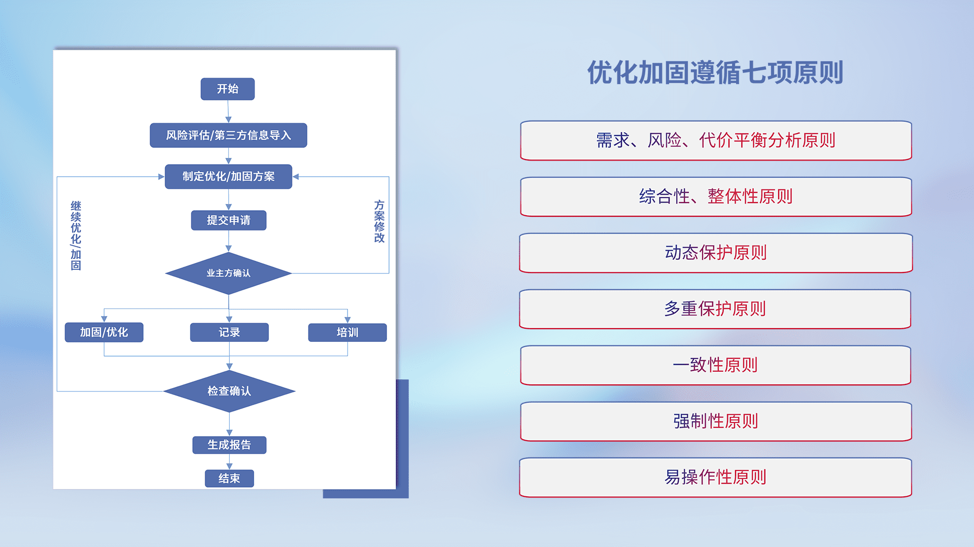 最大程度利用现有资产,,,,对评估发现的问题进行封堵与整改,,,,防止漏洞被利用,,提升整体网络安全性,,,,为客户带来高标准的优化加固服务。。。